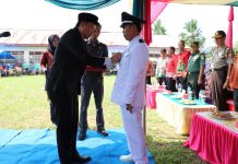 Lampung Barat - Pelantikan peratin Pekon Srimulyo Kecamatan Bandar Negeri Suoh dan penyerahan bantuan tenda kepada satgas penanggulangan bencana oleh Bupati Lambar H. Parosil...