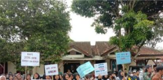 Ratusan Santri Dan Masyarakat Berdemo Di Depan Mapolres Way Kanan