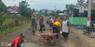 Perbaiki Jalan Peratin Tanjung Sari Sukamto Ajak Warganya Bergotong Royong